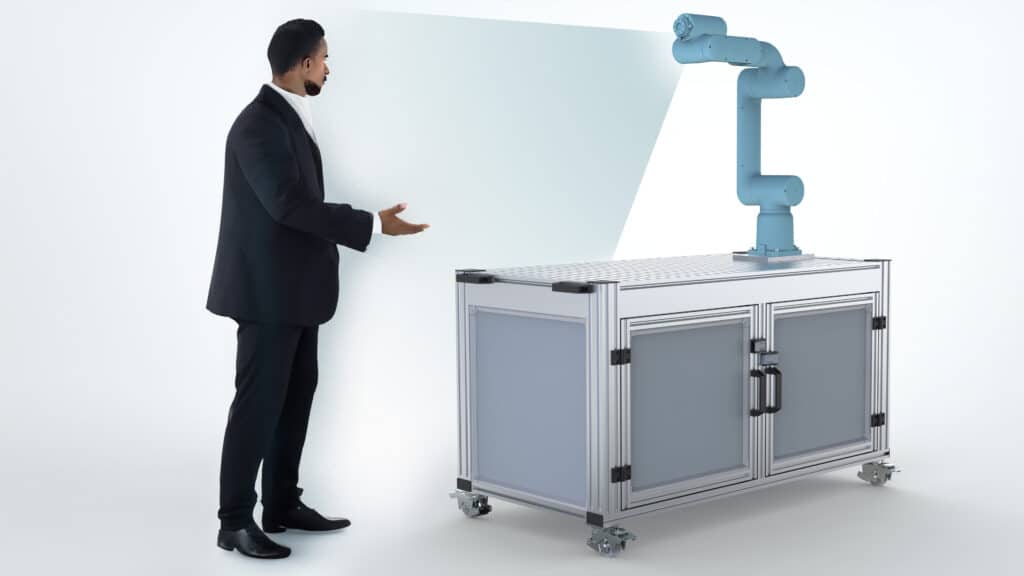 Die Sicherheit ist in jeder Produktionsumgebung von größter Bedeutung. Cobots wurden speziell für die sichere Arbeit an der Seite von Menschen entwickelt und sind mit fortschrittlichen Sensoren und integrierten Sicherheitsfunktionen ausgestattet. Diese Sensoren ermöglichen es kollaborative Roboter, die Anwesenheit von Menschen in der Nähe zu erkennen und automatisch zu verlangsamen oder anzuhalten, um Unfälle zu vermeiden. Durch den Wegfall physischer Barrieren zwischen Menschen und Robotern schaffen Cobot-Stationen einen sichereren und kooperativeren Arbeitsbereich. Einfach, schnell und flexibel anpassbar an die Umgebung ermöglicht die Robotunits Cobot-Station eine sichere und effiziente Mensch-Roboter-Kollaboration.