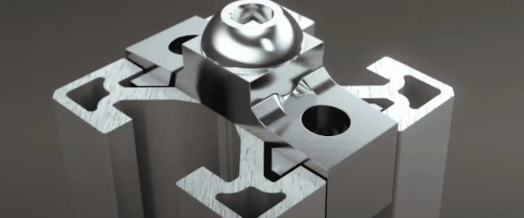 Our form-locating and play-free fastening technology lets you connect extrusions with strength comparable to welded connections. In fact, a single fastener provides up to 4 tons of tensile strength. Each system includes space-saving fasteners, standard screws and centering insertion pieces that when tightened, prevent the screw from loosening. Coupled with the extrusions’ concave surface geometry, this interplay between fastening components guarantees durability and stiffness—even in the presence of vibration.