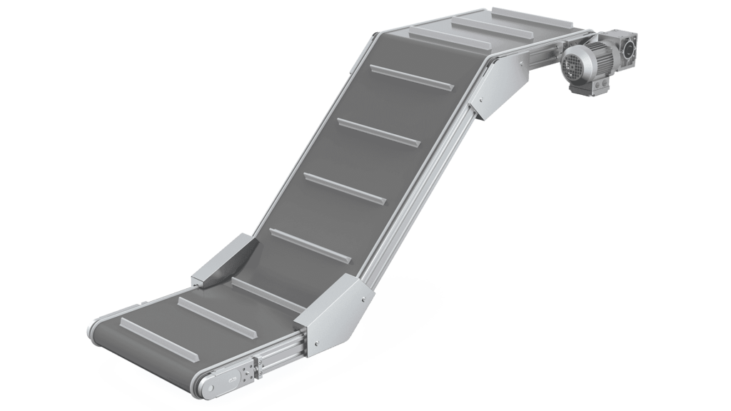 El transporte inclinado se realiza con tipos de banda adhesiva. En caso necesario, se pueden soldar tirantes a la banda para soportar el transporte de piezas fácilmente deslizantes o piezas pequeñas.