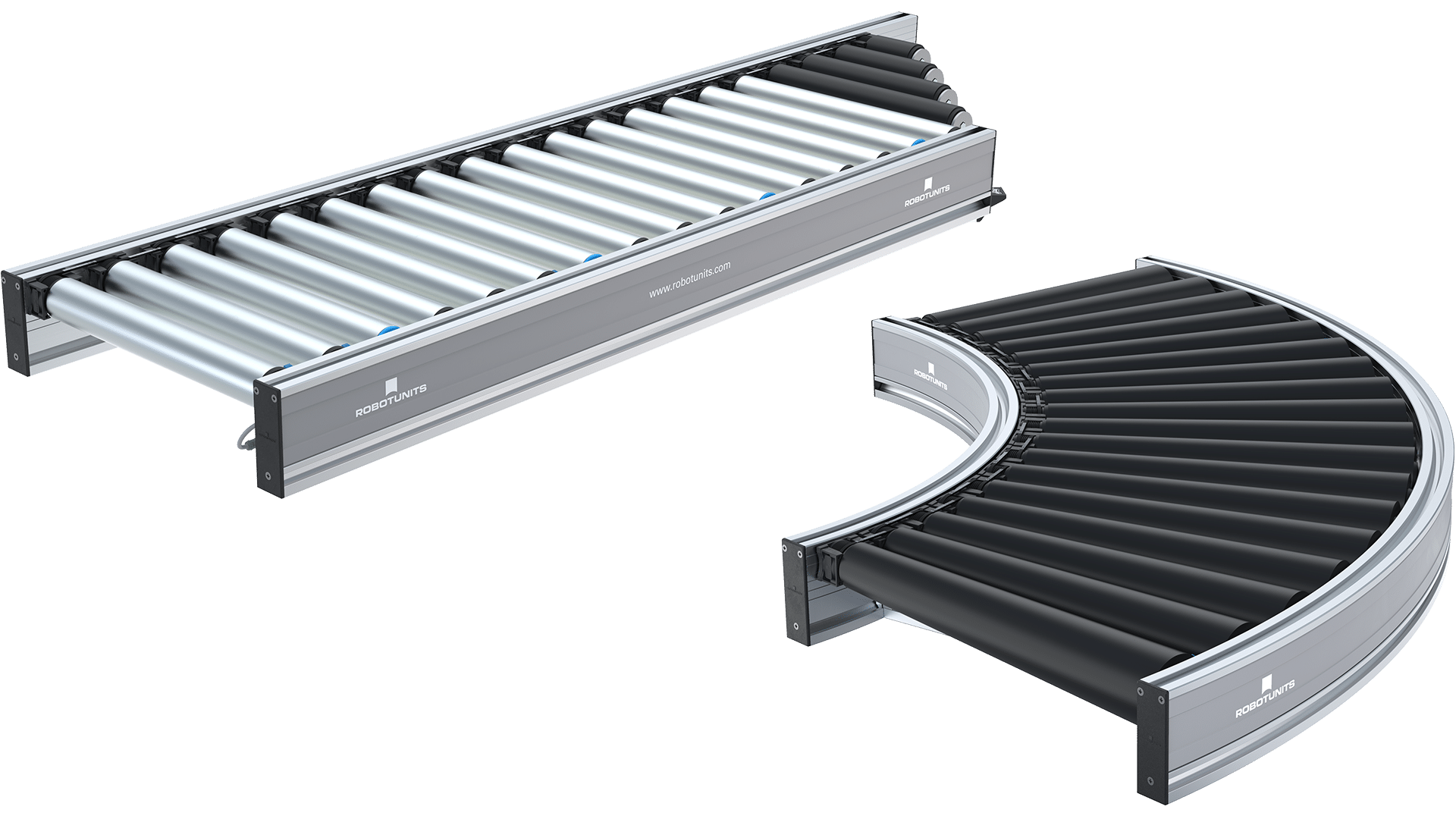 Trasportare scatole, pallet, cartoni e casse da A a B con una superficie di base stabile e piana, senza pressione di accumulo: questo è il punto di forza del sistema di trasportatori a rulli Robotunits. Grazie a diversi concetti di azionamento e varianti di design, esiste un trasportatore a rulli adatto per ogni applicazione.