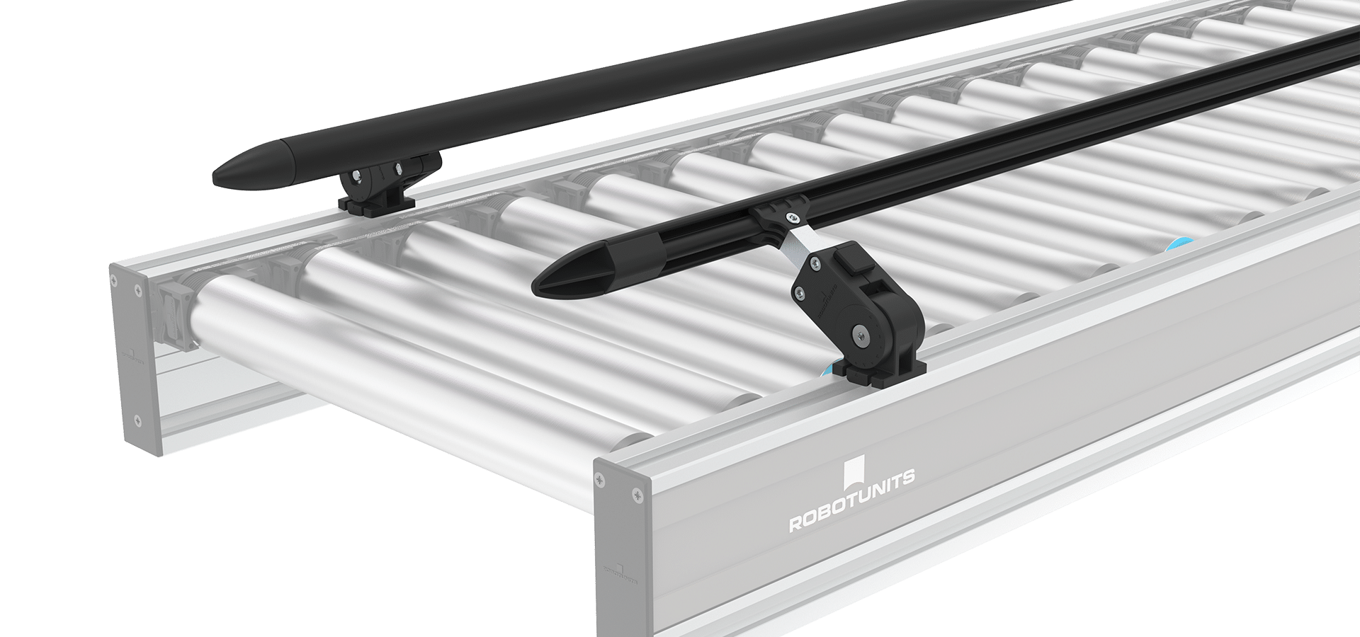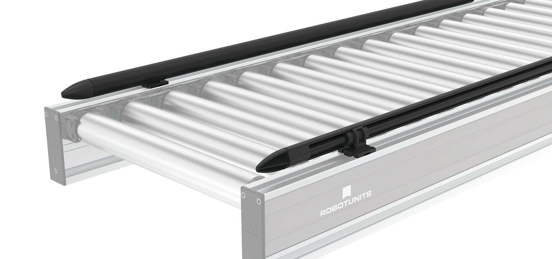 ‌Mit dem eigens entwickelten Profil für die Robotunits Rollenfördertechnik bieten wir eine einfache und integrierte Seitenführung, indem durch die vertieft platzierten Rollen bereits vom Profil eine seitliche Führung für ein sicheres Fördern entsteht. Je nach Transportaufgabe können auch andere Seitenführungen zur Anwendung kommen.