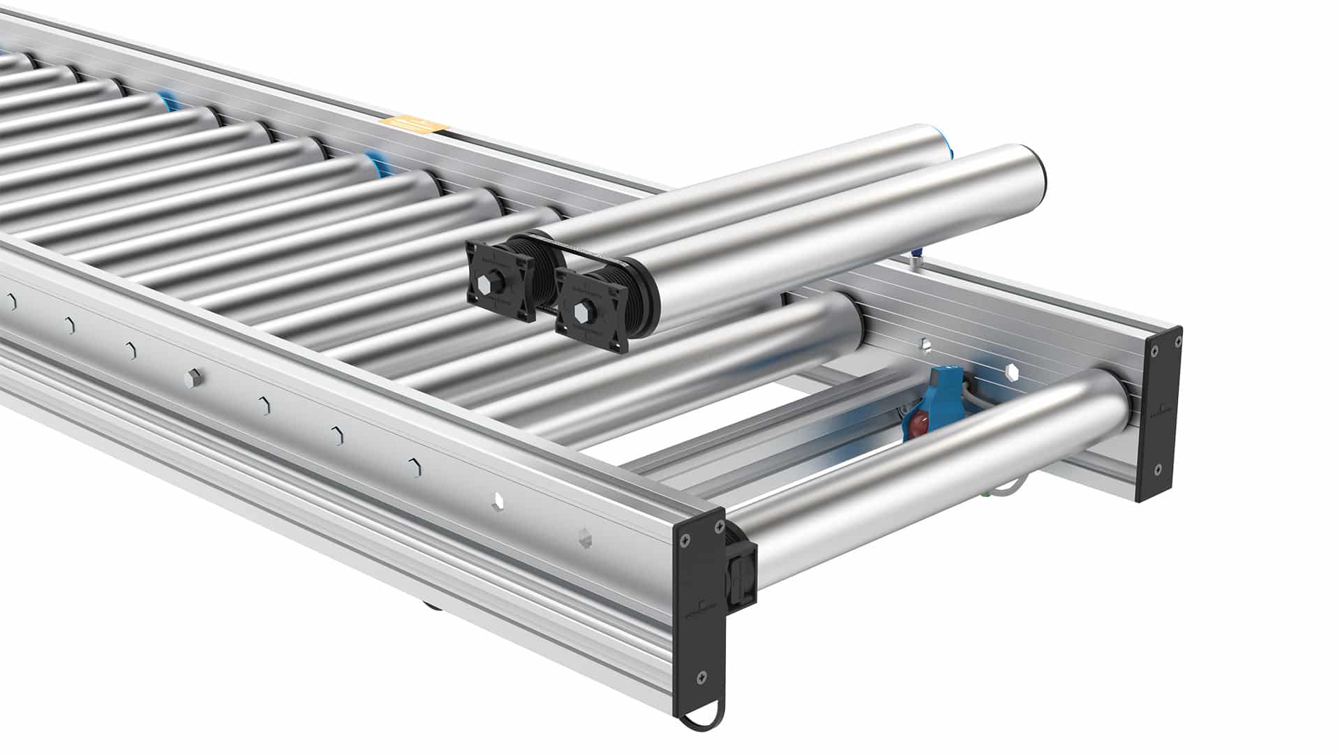 Eine Zone besteht im Standard aus einer Motorrolle und drei Tragrollen. Je nach dem zu transportierenden Fördergut werden die Rollen im passenden Abstand zueinander platziert. Zusätzlich sorgen integrierte Sensoren und Controller für die präzise Steuerung der Rollenfördertechnik.